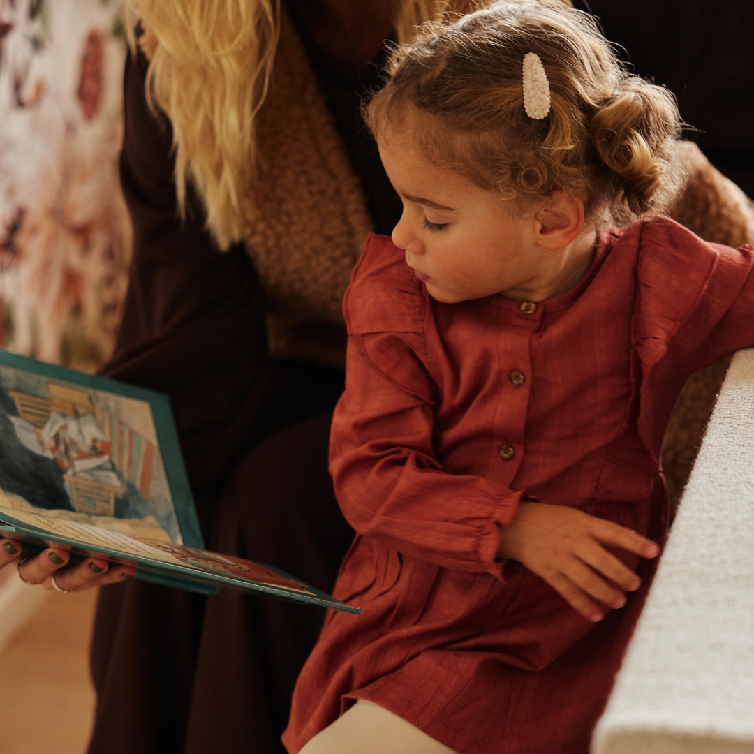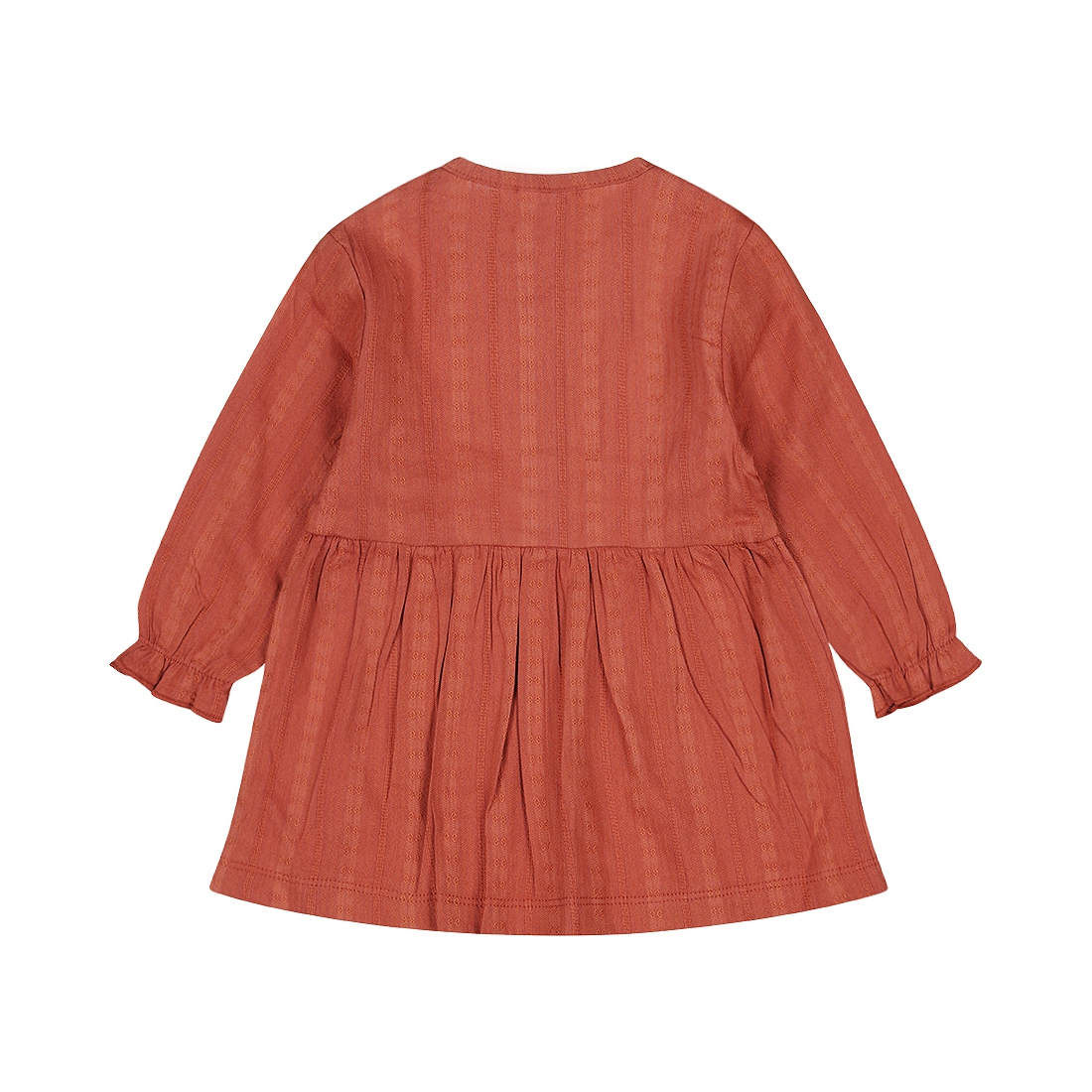 Robe bébé fille rosée, ornée de volants allant des épaules à la taille et sur les manches pour un style délicat et élégant. Elle est agrémentée de petits boutons du col jusqu’à la taille, offrant un look raffiné et facile à enfiler. Douce et confortable, parfaite pour les occasions spéciales ou le quotidien chic de bébé.